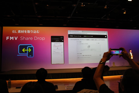 独自アプリケーション群として「FMV AI スマート動画編集」も発表された。これは、スマートフォンから画像/動画を取り込む「FMV Share Drop」とファイル整理アプリ「Reclip」、動画編集ソフト「PowerDirector for FMV」を連携させたもの。ReclipはローカルAIを使用し、プライバシーを守りながら人物や場所ごとに写真や動画のデータを自動整理する。動画作成時にはPowerDirector for FMVのクラウドAIを活用し、テーマを選ぶだけでBGMやテロップ、クロスフェード付きの動画を自動生成できる。生成した動画はそのままSNSなどで共有可能だ。