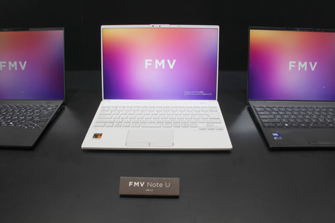ハードウェアの目玉は、14型のディスプレイを搭載するモバイルノートPC「Note U」シリーズの追加モデルだ。「UQ-L1」は、FMVとして初めてQualcomm製「Snapdragon X」を採用した。省電力性能に優れ、バッテリ駆動時間は、アイドル時で約41時間、動画再生時で約26時間を実現している。Web限定モデル「WU6-L1」では、世界最軽量をうたう