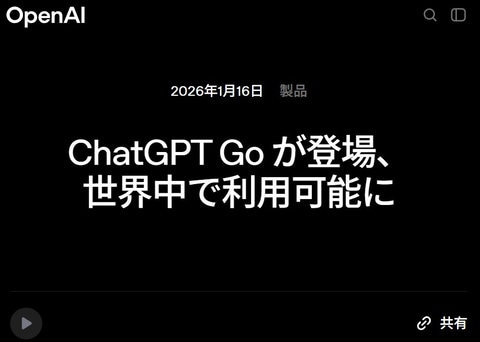 OpenAIは1月16日、AIチャットボットサービス「ChatGPT」の新しいサブスクリプションプラン「ChatGPT Go」を世界中で提供開始した。価格は月額1,500円。