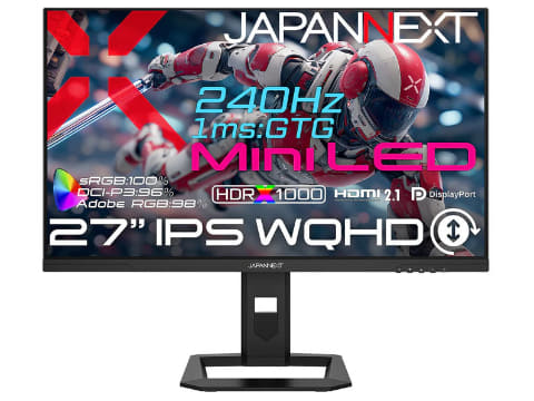 JN-IPSM27G240Q-HSPは、240Hz駆動の27型WQHD(2,560×1,440ドット)非光沢ミニLED IPSパネルを搭載したゲーミングモニター。価格は4万9,980円。