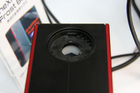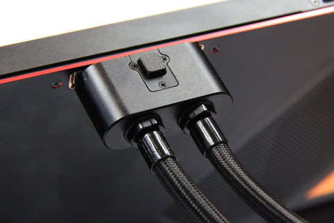 Frost Bayは、Super X本体背面上部の専用コネクタに接続し、冷却システムを水冷に置き換えるオプション。接続時は、Frost BayにAC給電し、Frost Bayから本体へ専用ケーブルで給電する。