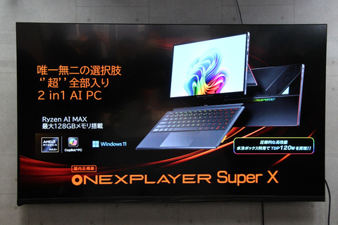天空は2月3日、ハイビーム秋葉原本店にて新製品のお披露目会を開催。現在予約受付中の、One-Netbook製モバイルゲーミングPCブランド「OneXPlayer」から「OneXPlayer Super X 国内正規版」(以下Super X)と、外付け水冷ボックス「Frost Bay」を公開した。