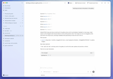 米OpenAIは2月2日(現地時間)、コーディングエージェント「Codex」のmacOS版アプリを公開した。ChatGPT Plus/Pro/Business/Enterprise/Eduの各プランで利用できる。現在は期間限定で無料版およびGoプランのユーザーも利用可能で、すべての有料プランにおいてレート制限を2倍に引き上げている。