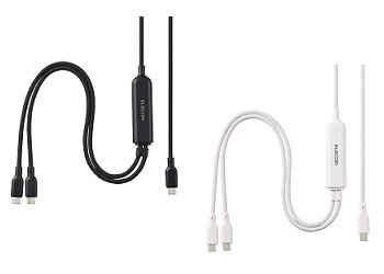 エレコムは、USB Type-Cポートを2つに分岐し、2台の機器を同時に充電できるケーブル「MPA-CCCA12」シリーズ、「U2C-CCCA12」シリーズを発売した。直販価格は1,980円。本体カラーはブラックとホワイトの2色。