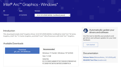 Intelは2月13日、最新GPUドライバ「Intel Graphics Driver 32.0.101.8509」を公開した。複数フレーム生成機能が利用できる機種が拡大している。