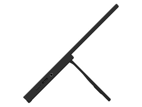 PRO MP165 E6は、60Hz駆動のフルHD(1,920×1,080ドット)の非光沢IPS液晶パネルを搭載したモバイルモニター。ビジネス向け製品という位置付けで、取り回ししやすいL字型のUSB Type-Cケーブルが付属している。背面にキックスタンドを備えており自立可能。また本体下部には1/4インチネジを備えており、三脚などに固定できる。