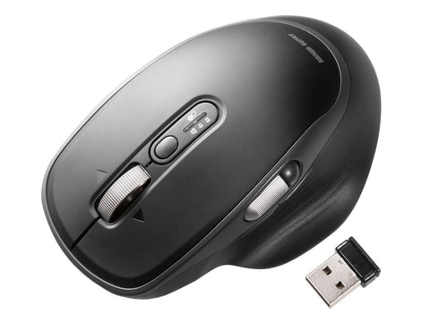 MA-WBIRS635BKは、高速スクロールと傾き操作が行なえるチルトホイールのほか、左側面に親指で操作するサイドホイールを装備したワイヤレスマウス。Bluetoothおよび2.4GHz(USBレシーバ)で接続でき、Bluetoothは最大2台のマルチペアリングに対応する。