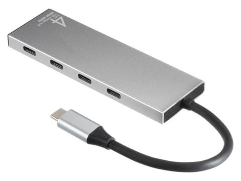USB-10TCP38SVは、高速データ転送とノートPCへの給電を同時に行なえる薄型のUSB Type-Cハブ。USB 3.2 Gen 2 Type-Cポートを4基搭載し、すべてのポートが同じ向きに配置されており、スムーズな抜き差しができる。アルミボディで、放熱性も高い。