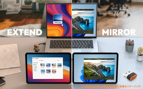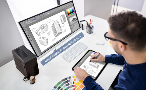 加えて、iPadをPCの外部モニターとして利用可能。拡張と複製のどちらにも対応する。マルチタッチ操作やペン入力、筆圧検知もサポートしており、iPadをペンタブレットのように使える。HDCPには非対応となる。