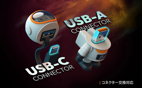 筐体は宇宙飛行士デザインのフィギュアとなっており、接続はUSB Type-CおよびType-Aに対応。なお、本機の利用には、事前に各デバイスへ専用アプリを導入し、Bluetoothでペアリングをする必要がある。