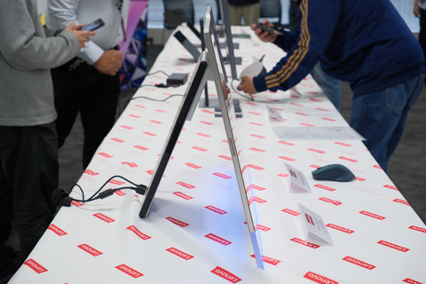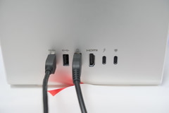 インターフェイスは後方の脚部に装備。映像入力対応のUSB Type-Cポートも設けており、スマートフォンなどを接続して本機をモニターのように利用することが可能。そのほか、人感検知センサーによるゼロタッチロック/ログイン機能も備える。