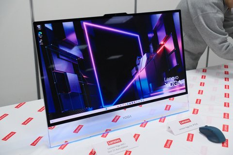 Yoga AIO i Gen 11 Aura Editionは、ディスプレイ下の脚部に透明なパーツを採用した「ディスプレイ浮遊デザイン」を特徴とする31.5型一体型PC。5月下旬以降の発売を予定しており、価格は未定。