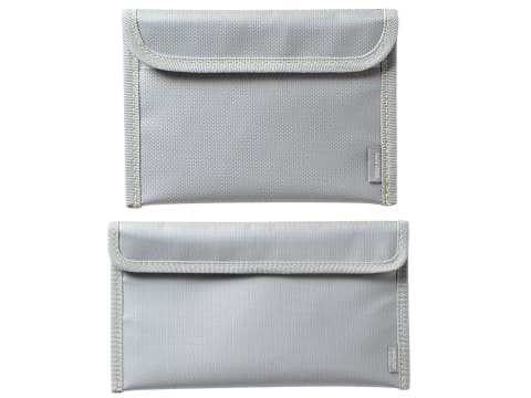 200-BAGINFP1SVおよび200-BAGINFP2SVは、万が一のモバイルバッテリ発火時に炎を外部へ出さないことを目的とした製品。1層目にシリコン加工ガラス繊維、2層目にガラス繊維、3層目に難燃ファスナー、4層目に難燃テープを採用した4層の難燃構造を備え、内外両面から延焼リスクを低減するとしている。また、表面には軽度の水濡れを防ぐ撥水加工を施したスリム設計となっている。