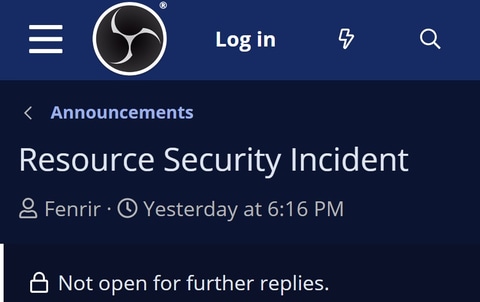 ライブ配信ソフト「OBS Studio」の公式フォーラムにおいて、一部のアカウントが第三者に不正アクセスされ、マルウェアを含んだプラグインが配信されたことが明らかになった。