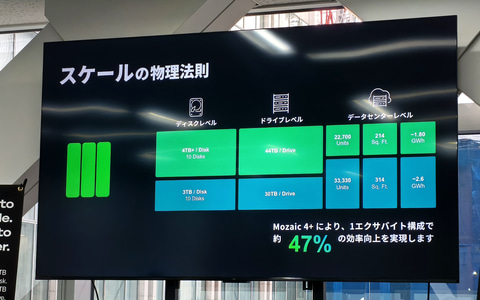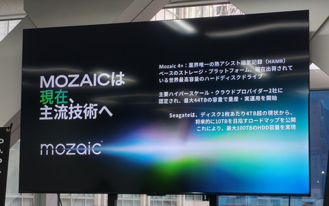先日弊誌でも紹介した44TB HDDにMozaic 4+が用いられており、すでにハイパースケーラ(大規模クラウド事業者)2社のもとで現場運用が開始されている。