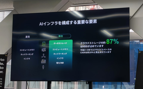 AIインフラやクラウドサービスの展開に伴い、全世界でのデータ生成量は増え続けている。新妻氏は「データが、価値を生み出す資産となった」と指摘。データをどう生成、管理、再利用するかが重要となり、そのために大規模なストレージがより強く求められているという。