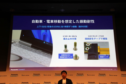 振動耐性にも注意が払われている。ビス1本1本に緩み止めの接着剤が塗布され、コネクタとケーブルの接続部はテープで補強されている。これにより、自動車や電車での移動を想定した、上下/左右/前後各1時間ずつの振動に耐える強度を確保したという。