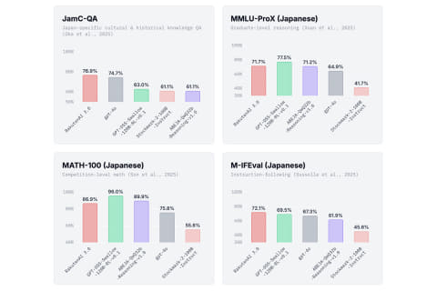 Rakuten AI 3.0は、6,710億(671B)パラメータを持つエキスパート混合モデル(MoE)で、日本語に最適化。文章作成、コード生成、文書分析/抽出といったタスクが得意で、従来のモデルと比較して性能が大幅に向上し、より堅牢になった。また、日本の文化知識、歴史、大学院レベルの推論、競争数学、指示追従などにおいて、競合の主要モデルより優れているとしている。