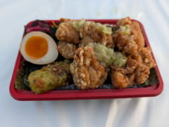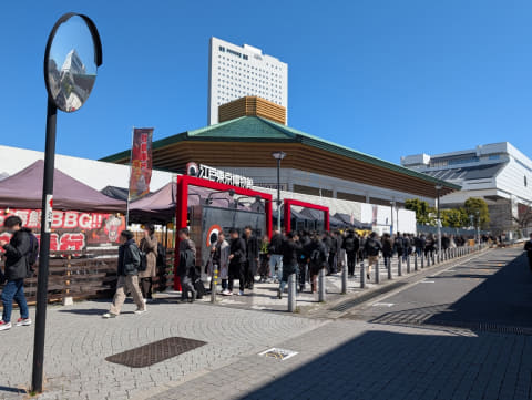 飲食周りについても大幅に改善。「CAPCOM CUP 11」のときは両国国技館内のおつまみ類くらいしか食べられる物がなかったが、今年は昼から夕方までの時間、国技館の外周エリアにキッチンカーが新たに配置され、バリエーション豊かな飲食が楽しめるようになっていた。筆者も今回はキッチンカーで販売していた唐揚げ海苔弁当を食したが、疲れた体に揚げ物と炭水化物が沁みわたり、終日精力的な取材が行なえた。