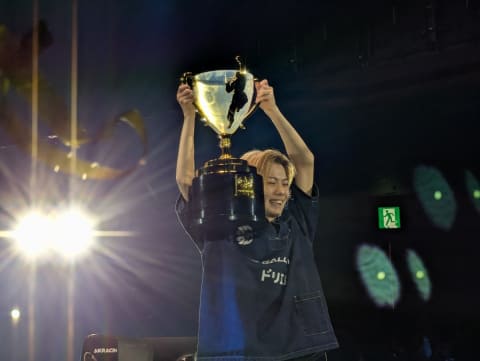 続けて「自分が両国国技館に来たのって13歳の頃、32年前なので、当時の自分に32年後、まだ君、このゲームやってるよ。しかも一応優勝しているよと言っても信じなさそうだと思う。10歳から格闘ゲームを始めて、15歳くらいで初めて大きな大会で勝って、そこから今までいろいろあったけど、この年でもこういう舞台に立たせて貰えて、もちろんチームのおかげですけど、優勝もさせて貰えたので、すごくありがたい幸せな人生だと思う」と自身の半生を振り返り、感慨深げにコメントした。