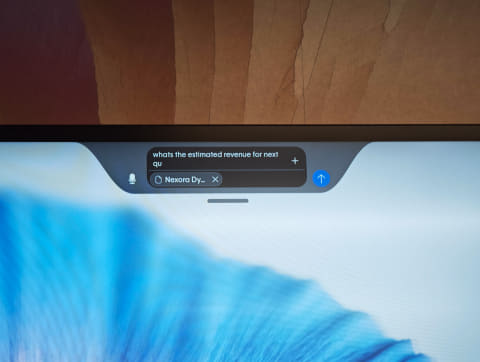 HP IQはPCの上部に表示される独自のUIを用意しており、ユーザーがそこをクリックしたり、ファイルを読み込ませたりすると動作が開始される。たとえばPDFファイルを読み込ませると、ChatGPT、CopilotやGeminiなどで見慣れたプロンプトが表示されて、そこにそのファイルを元にしてほしいことを入れて処理をさせることができる。