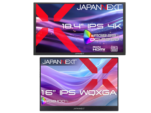 JAPANNEXTは、IPSパネルと自立式キックスタンドを搭載したモバイルモニター「JN-MD-IPS184U」および「JN-MD-IPS16WX」をECサイト限定で発売する。いずれもフェルトケースが同梱されるほか、フリッカーフリー(ちらつき軽減)やブルーライト軽減モードに対応する。