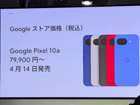 Googleは、コスパ重視のスマートフォン「Google Pixel A」シリーズの最新モデルとなる「Google Pixel 10a」を4月14日に発売する。すでに4月7日より予約を開始している。また、日本限定色である「Isai Blue」モデルも同時に予約開始、5月20日に発売する。価格は128GBモデルが7万9,900円、256GBモデルが9万4,900円。