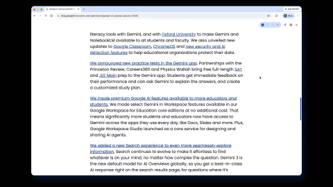 一方、リーディングモードは新たに全画面表示で開くようになった(従来は標準でWebページとウィンドウを左右に分割して半分ずつ表示)。これにより視覚的に邪魔な要素が排除され、情報量の多いWebページのテキストに集中できるようになるとしている。