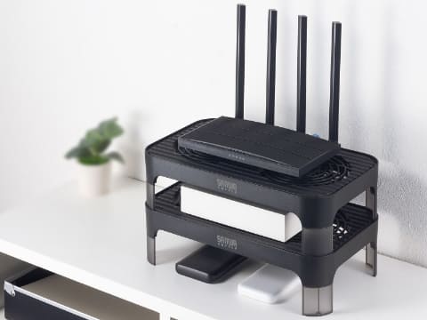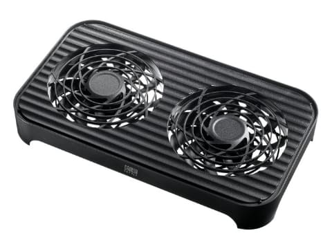TK-CLN32Uは、140mm空冷ファンを2基備えた冷却台。ノートPCやWi-Fiルーター、外付けHDD、充電中のモバイルバッテリなどの下に設置することで、機器の冷却を補助できる。