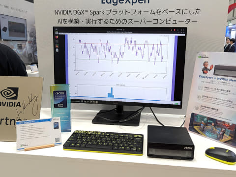エッジAIコンピュータとしては、CPUにNVIDIA GB10を搭載した「EdgeXpert」が展示されて、AI処理を行なうデモなどが実施されていたほか、Xeonや、AMD EPYCなどが搭載されたラックマウントサーバーなど、かなり濃いめの展示内容となっていた。