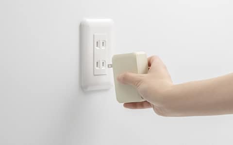 備える充電器は、ACアダプタ兼モバイルバッテリとなっている製品。自宅では壁に挿したまま充電器として使い、外出先ではモバイルバッテリとして利用できる。蓄光タイプの筐体を採用し、災害や停電時に暗闇になったとしても探しやすいのが特徴。