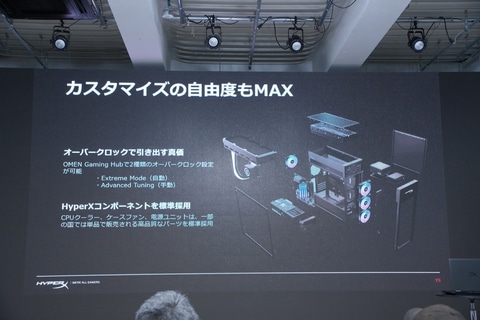 そのほかソフトウェア面では、OMEN Gaming Hubによるオーバークロックに対応。自動調整のExtreme Modeと手動調整のAdvanced Tuningが選択できる。また、OMEN AIを使ったゲームごとのパフォーマンス最適化機能も用意する。