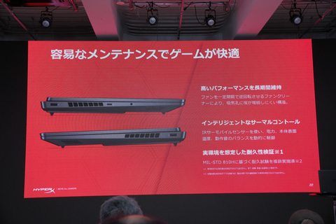 キーボードは8Kポーリングに対応し、高速で正確な入力を実現。RGB LEDによるバックライトも楽しめる。筐体はMIL-STD 810Hの試験を実施した高耐久設計で、独自の冷却システムであるOMEN Tempest Coolingテクノロジーを採用することで、効率的な排熱により長時間でも安定したゲームプレイを可能にした。内蔵センサーのデータを活用し、電力や温度、動作音のバランスを動的に制御する機能も備える。