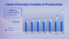 前世代のCore 7 150Uと比較すると、最大2.1倍高速なコンテンツ制作/生産性アプリの性能、最大64%低い電力、最大2.7倍のGPU性能を提供できるとしている。