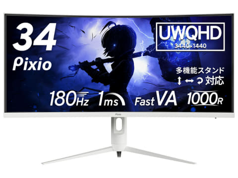 Pixio、ホワイトの34型湾曲ゲーミングモニター。発売記念で10%オフの約6万円