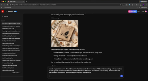 写真、動画、デザインなどさまざまなメディアに対応しており、初期コンセプトから最終的な完成までシームレスなワークフローで作業が可能。Firefly AIアシスタントが実行する各ステップは可視化され、ユーザーの要望に沿うように質問しながら進められる。微調整や方向性の変更は適宜行なえるほか、途中から手作業に切り替えることもできる。