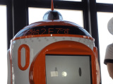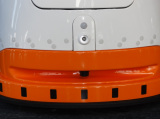 | 頭部先端のカメラと東京タワーをイメージした装飾の「アンテナ」 | 本体上部の電光掲示板 | ボディ下部に並んでいる障害物検知センサー、超音波センサーで周囲の人を検知する |