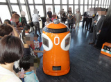 | 高さはおよそ160cm | 手の部分はFelicaリーダー | 早速大勢の人たちに囲まれていた |