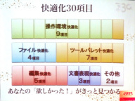 これらを含めて、操作環境に関する9項目、ファイルに関する4項目、ツールパレットに関する7項目、編集に関する5項目、文書表現に関する3項目、そのほか2項目を快適化した。