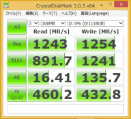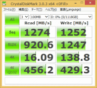 一方でATTO Disk Benchmarkの結果を見ると、リードで最大約2,678MB/sec、ライトで最大約1,294MB/secと、ほぼ公称値に達する結果を叩き出した。SATA 6Gbps接続のIntel 730と比較して雲泥の差であり、PCI Express x4(3.0)という広い帯域と、プロトコルのオーバーヘッドが少ないNVM Expressのメリットが遺憾なく発揮されている。