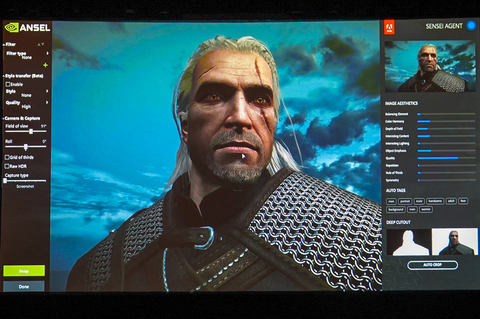 対談のなかでフアン氏は、GeForce系GPUで利用できるキャプチャ機能「Ansel」の開発版を公開。この開発版には、Adobe SenseiのAIを利用した物体認識機能が用意されており、キャプチャしたスクリーンショットをAdobe Senseiが解析し、ゲームのキャラクターの性別や年齢などを判別したり、物体(それが武器なのかなど)を判別することが可能になっていた。また、特定のキャラクターを指定しておけば、そのキャラクターのベストシーンをAdobe Senseiが判別してキャプチャできるなどといった機能が紹介された。