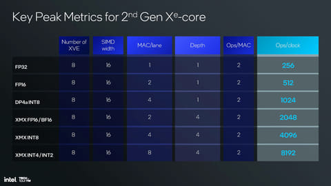 SIMD8からSIMD16に進化しXVEの演算効率が強化。さらにXMXに対応で68TOPSを実現