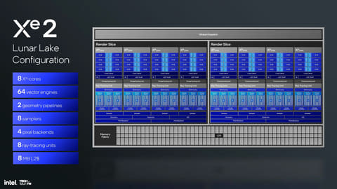 Lunar LakeのGPU最大の特徴はIntelが「Xe2」と呼んでいる新しいGPUアーキテクチャを採用していることだ。