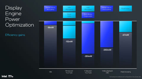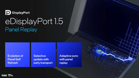大きな違いは、eDP 1.5に新しく対応したことで、Low Power LCDのような低消費電力なディスプレイと組み合わせると、必要に応じてディスプレイへのデータ転送を停止するパネルセルフリフレッシュ、必要な部分だけを転送する機能、適応型同期を実現するパネルリプレイなどに対応し、その間SoCが動作を停止することで消費電力を削減する仕組みになっている。