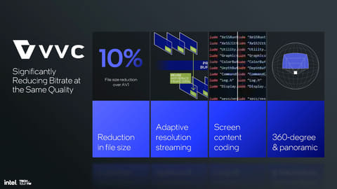 また、帯域幅に応じて解像度を動的に変更するという仕組みが入っており、YouTubeのようなストリーミング型ビデオ配信などで採用すると、動画再生時のユーザー体験が向上するという。つまり、動画配信サイトなどがH.266/VVCに対応すると、Lunar LakeではCPUやGPUに負荷を最小限にして再生できる。