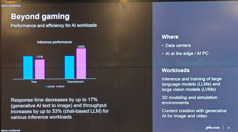 Micron Technology(以下Micron)は、6月4日から台湾/台北市で開催されているCOMPUTEX TAIPEI 2024のメイン会場近くで記者会見を6月5日に開催し、「GDDR7」のサンプル出荷を開始したことを明らかにした。