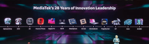 「我々は今AIの時代に途中にしている。そのためAIを加速するような半導体製品を用意しており、AI機能を搭載したスマートフォン、IoT、自動車、スーパーコンピュータ、ASICなどに取り組んでいる」とし、同社の主力事業であるスマートフォン/Chromebook向けSoCやIoT向けSoC、さらには今後の注力分野として自動車、さらにAIデータセンター向けのソリューションに力を入れていくと説明した。