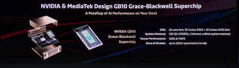 そうしたNVIDIAとの提携は、自動車向けだけに留まらない。MediaTekはデータセンター向けの各種製品で、NVIDIAとの協業を行なっている。3月のGTCで発表されたDGX Sparkには、MediaTekがCPUの設計を担当したGB10がSoCとして採用されている。