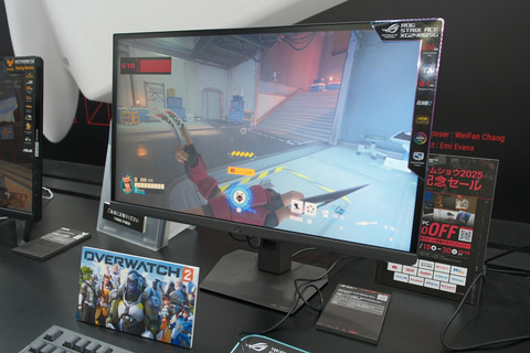 それ以外にも、240Hz/4K(3,840×1,600ドット)対応QD-OLED搭載の27型「ROG Strix OLED XG27UCDMG」、240Hz/WQHD対応WOLED搭載の27型「ROG Strix OLED XG27AQDMG」、180Hz/WQHD対応Fast IPS搭載の27型「ROG Strix XG27ACS」なども並んでいた。