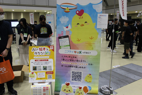 スポンサーブースでは、協賛企業からさまざまな企画が出展されている。例として、キオクシアが自作SSDなどの展示および同人誌配布、ニフティが生成AIを用いた絵本作成体験やネットワークを題材としたカードゲーム展示、日本マイクロソフトが最新のCopilot体験などだ。